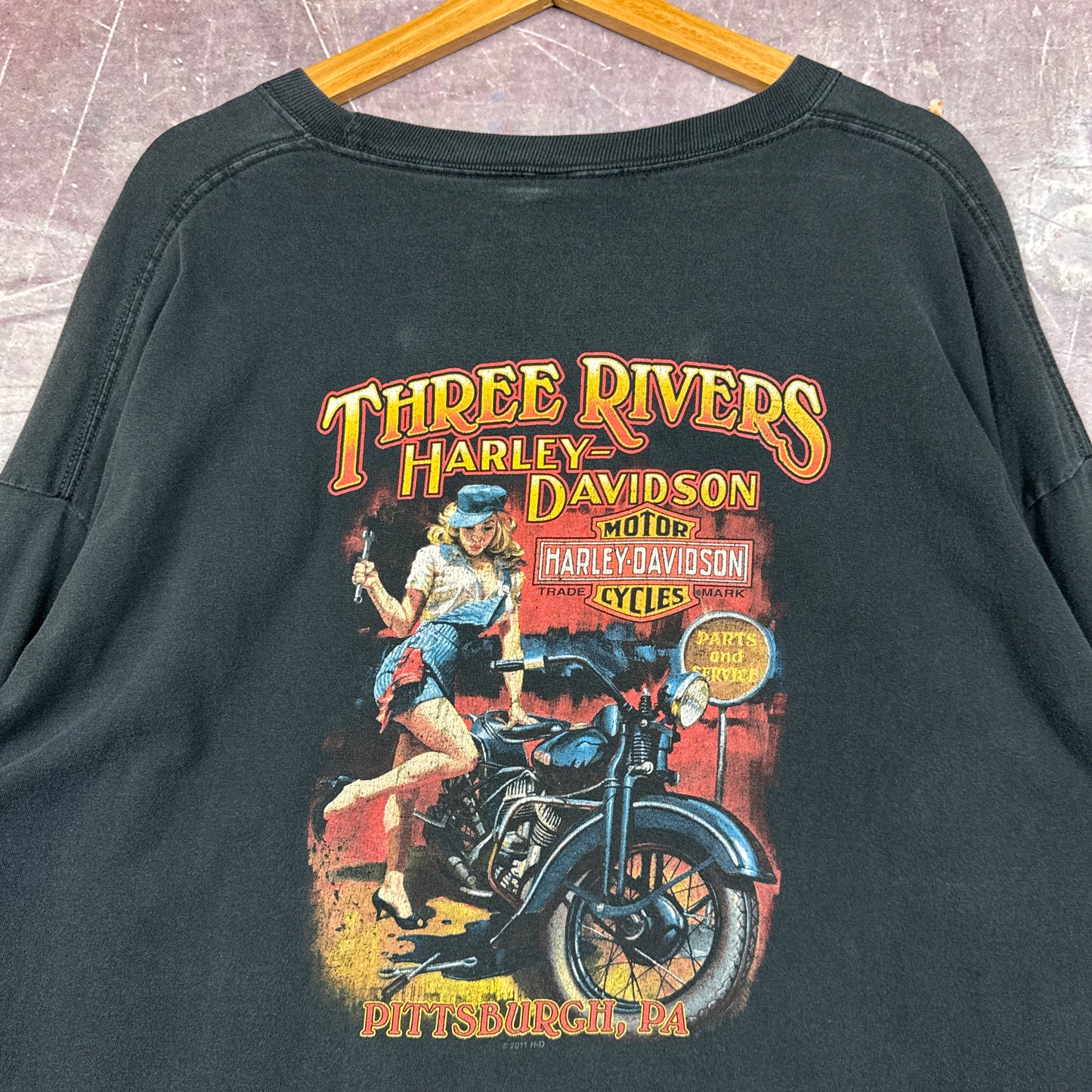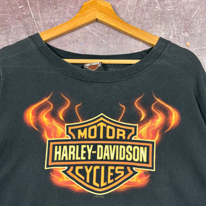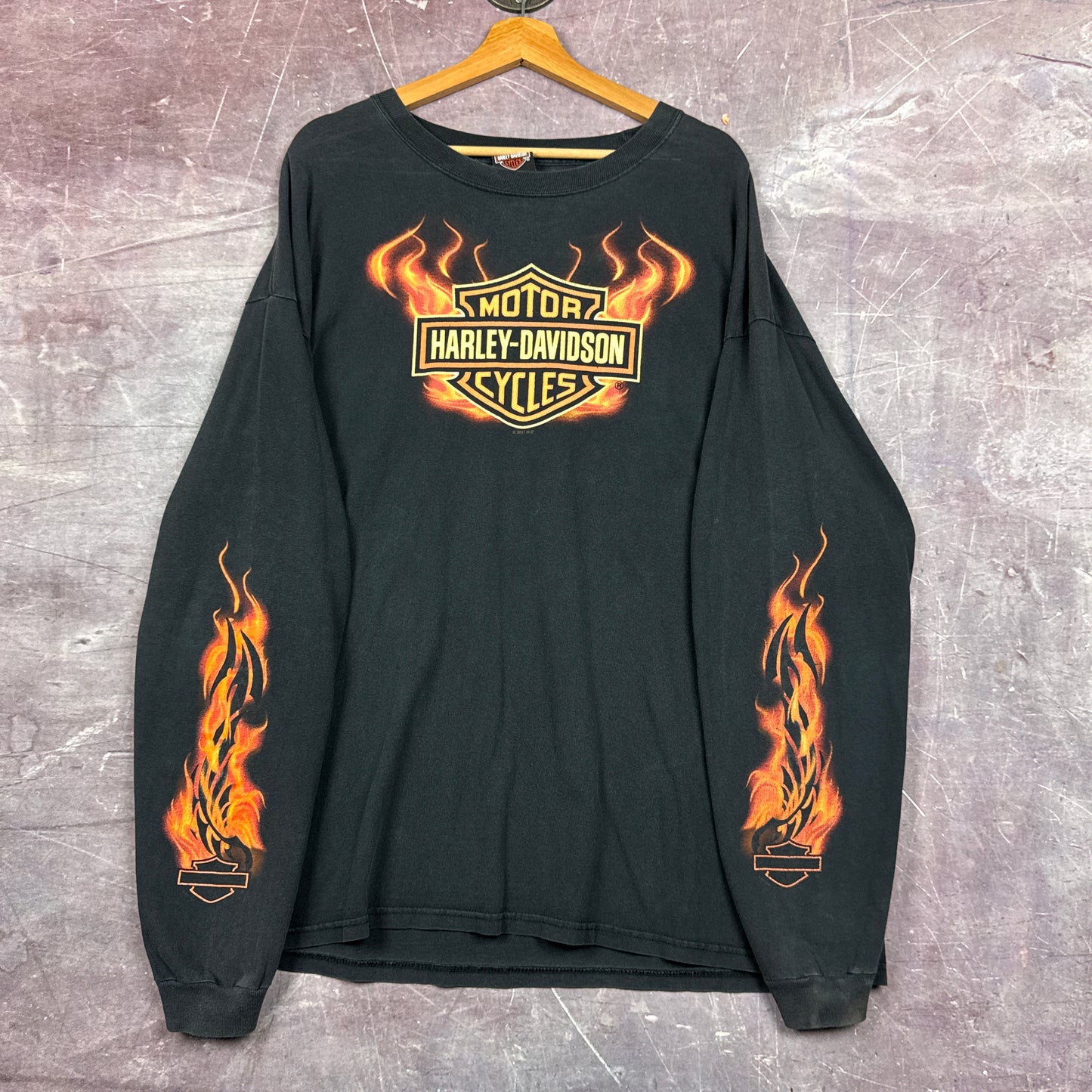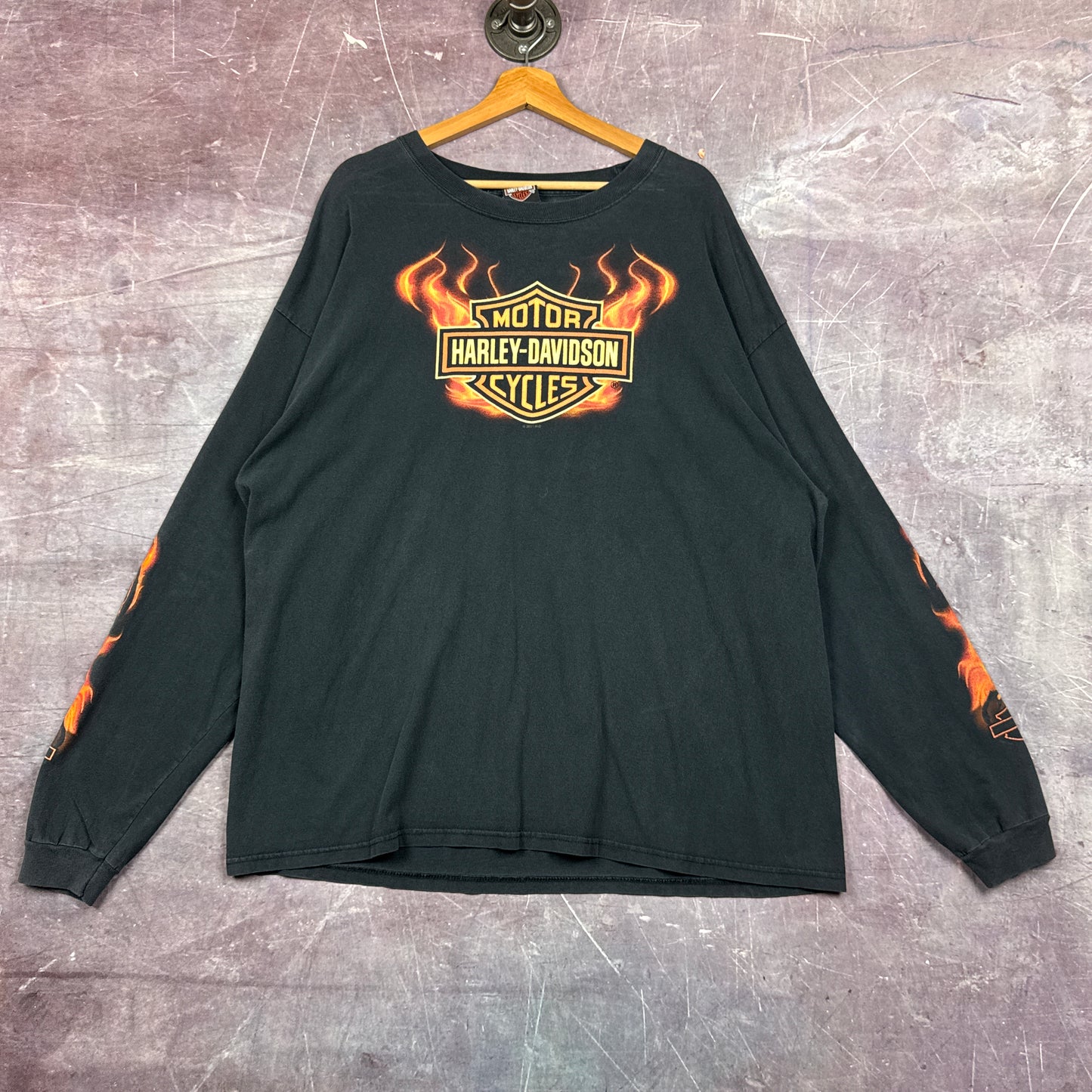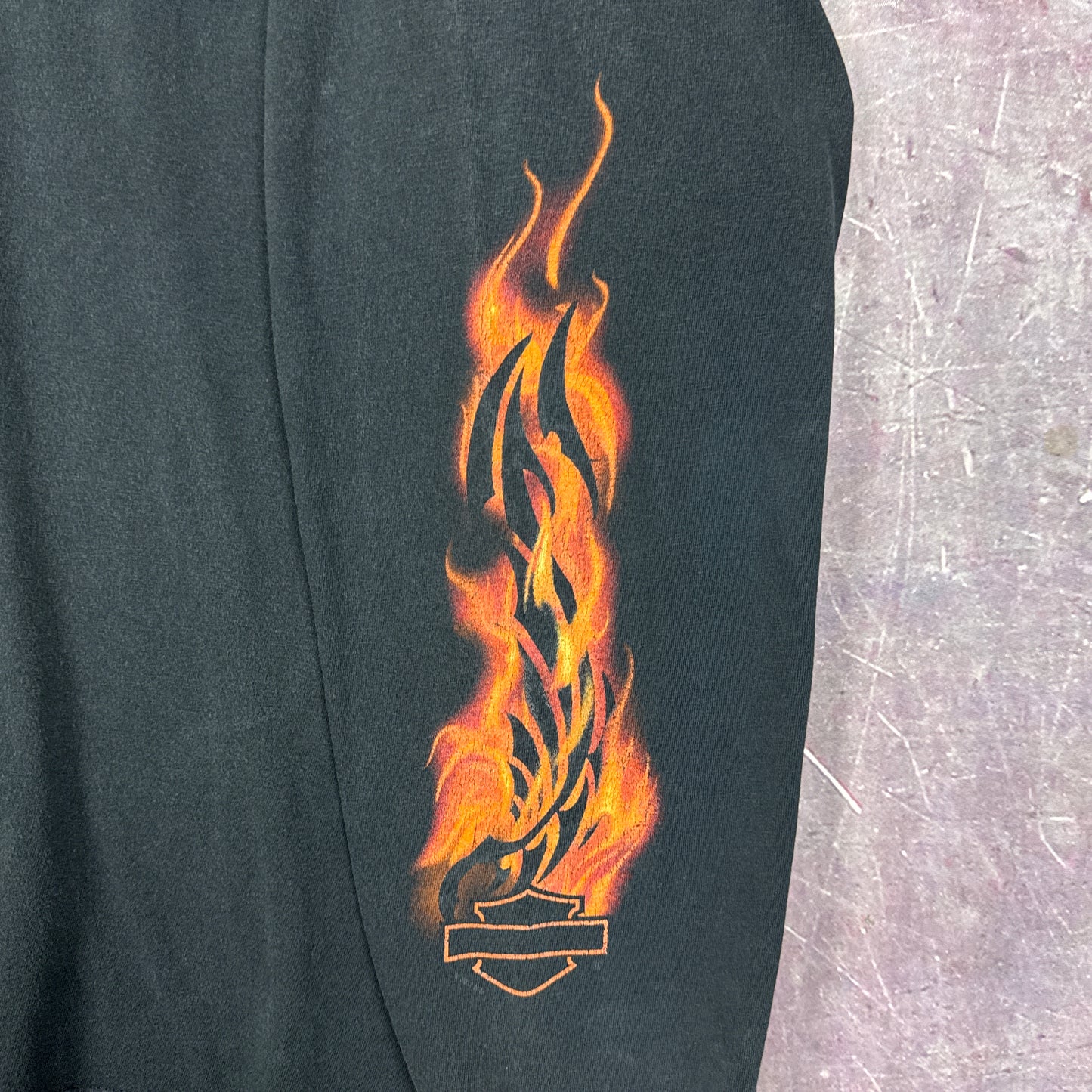 00s Black Harley Davidson Flame Sleeve Shirt 3055