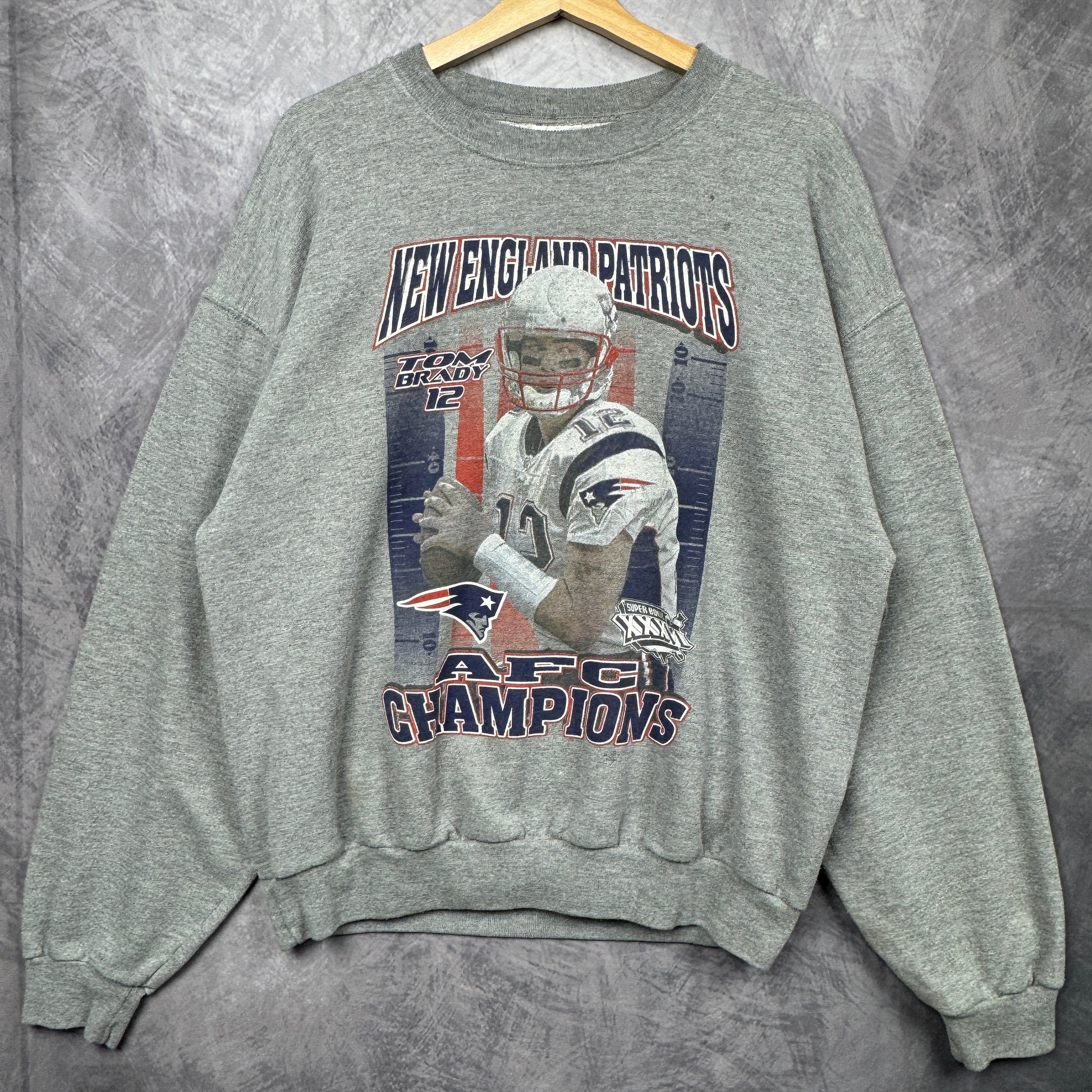 00s Grey Patriots Tom Brady Crewneck Sweatshirt 4107