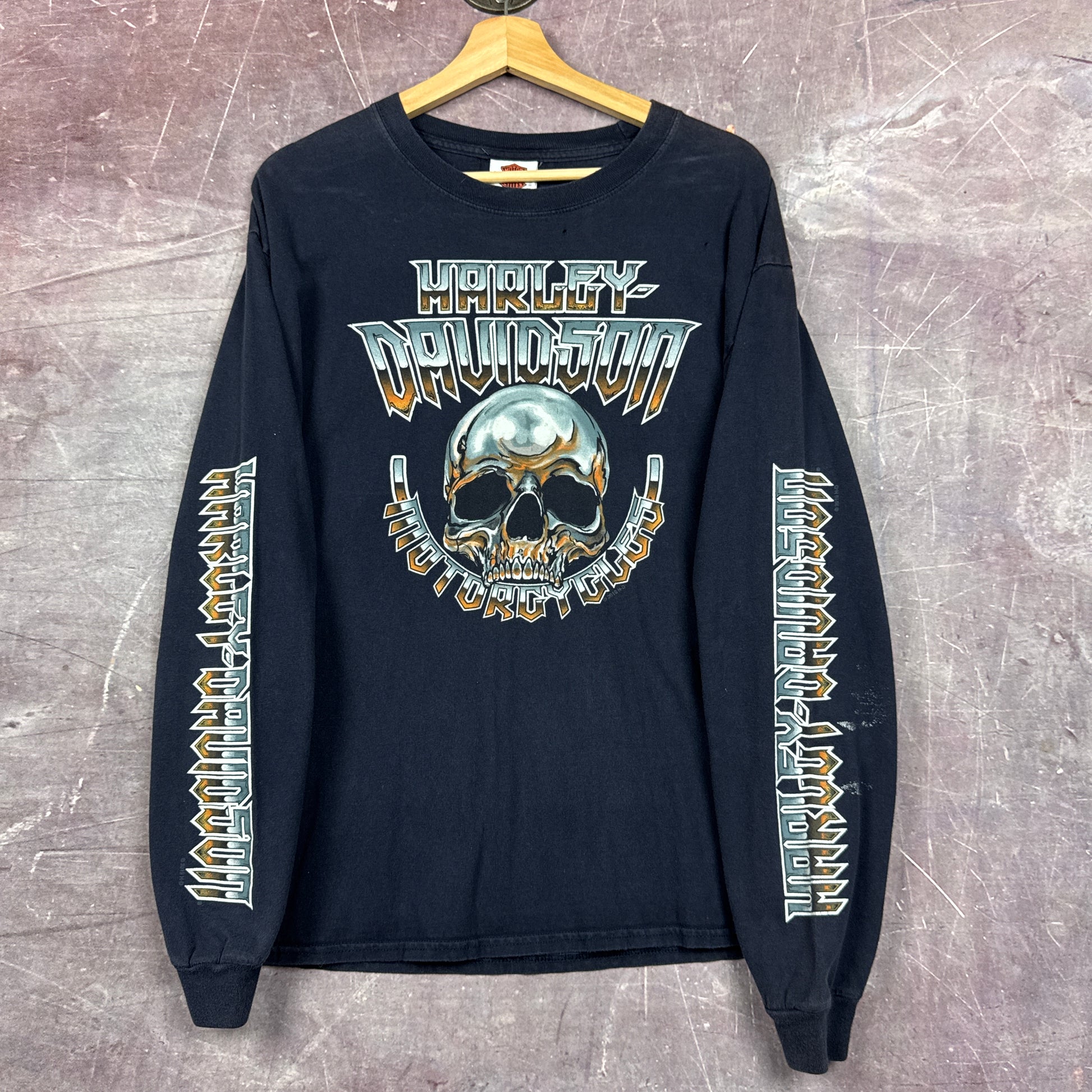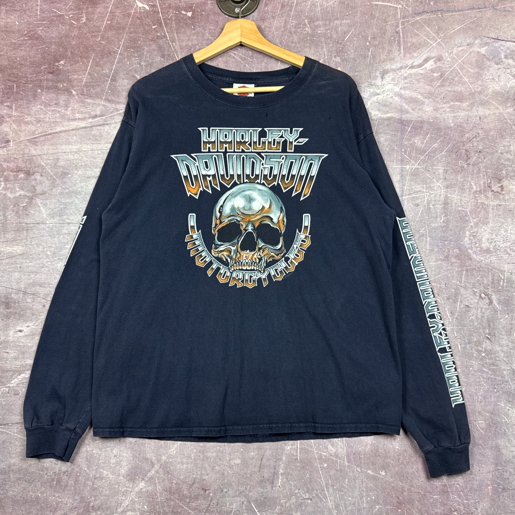 00s Navy Blue Harley Davidson Long Sleeve Shirt 3086