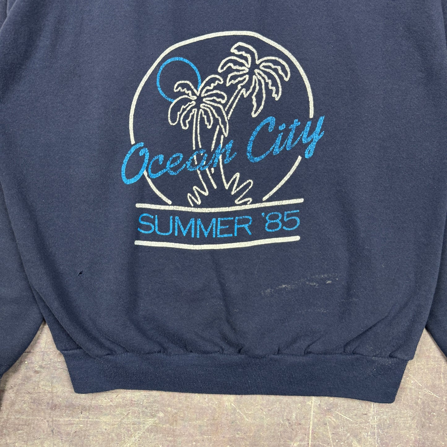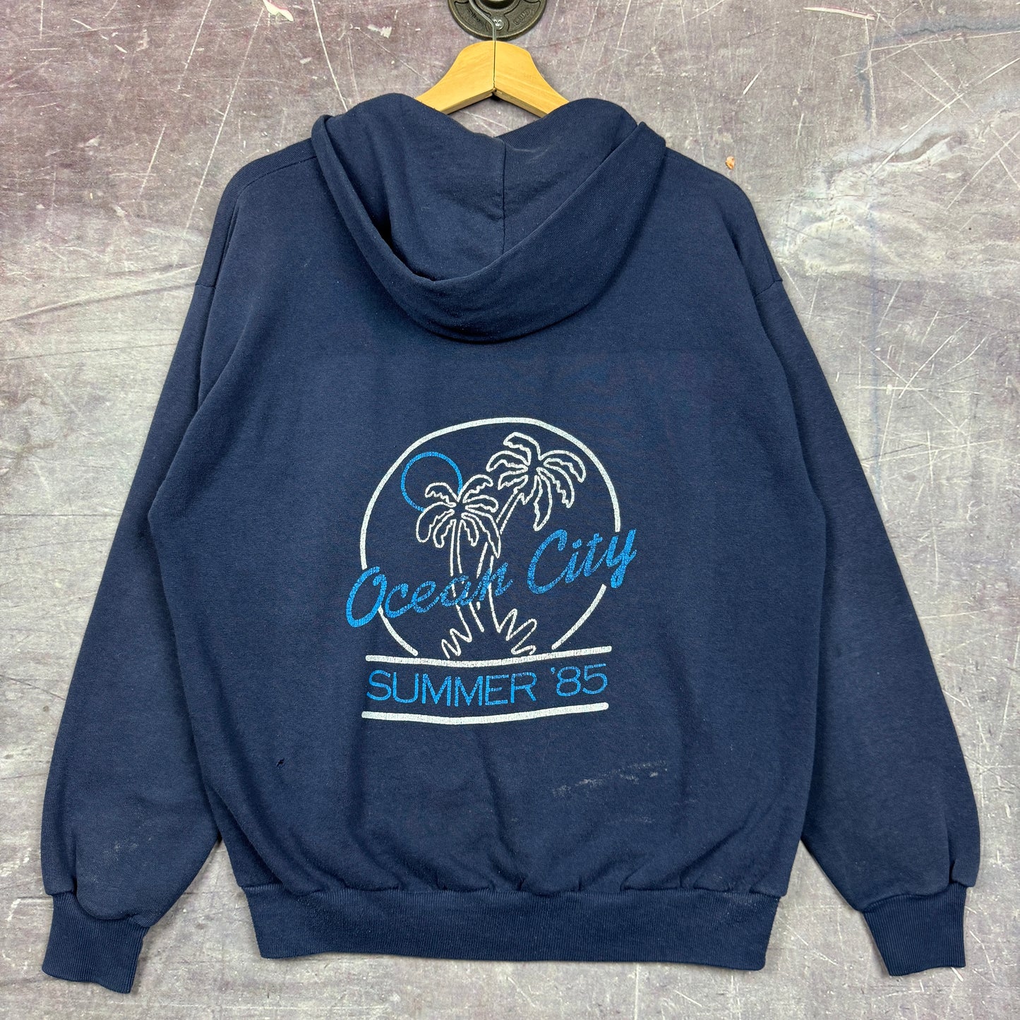 1985 Navy Blue Ocean City Summer 85 Zip Up Hoodie M 1847