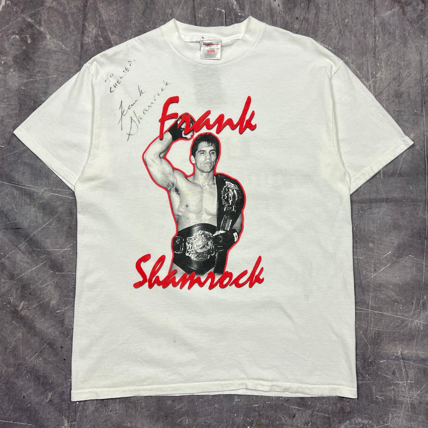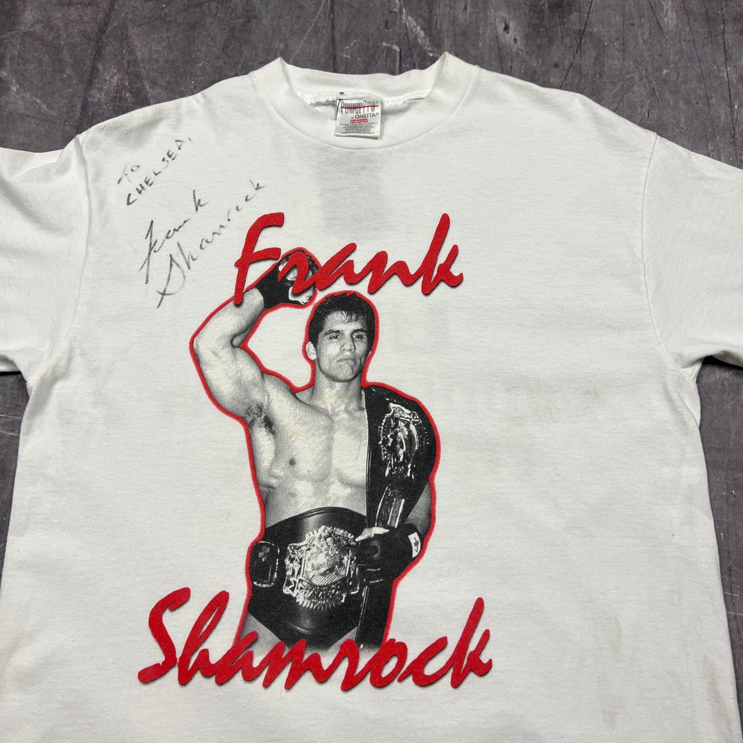 1998 White Frank Shamrock UFC Middleweight Champion Signed Graphic Shirt L RARE AS81