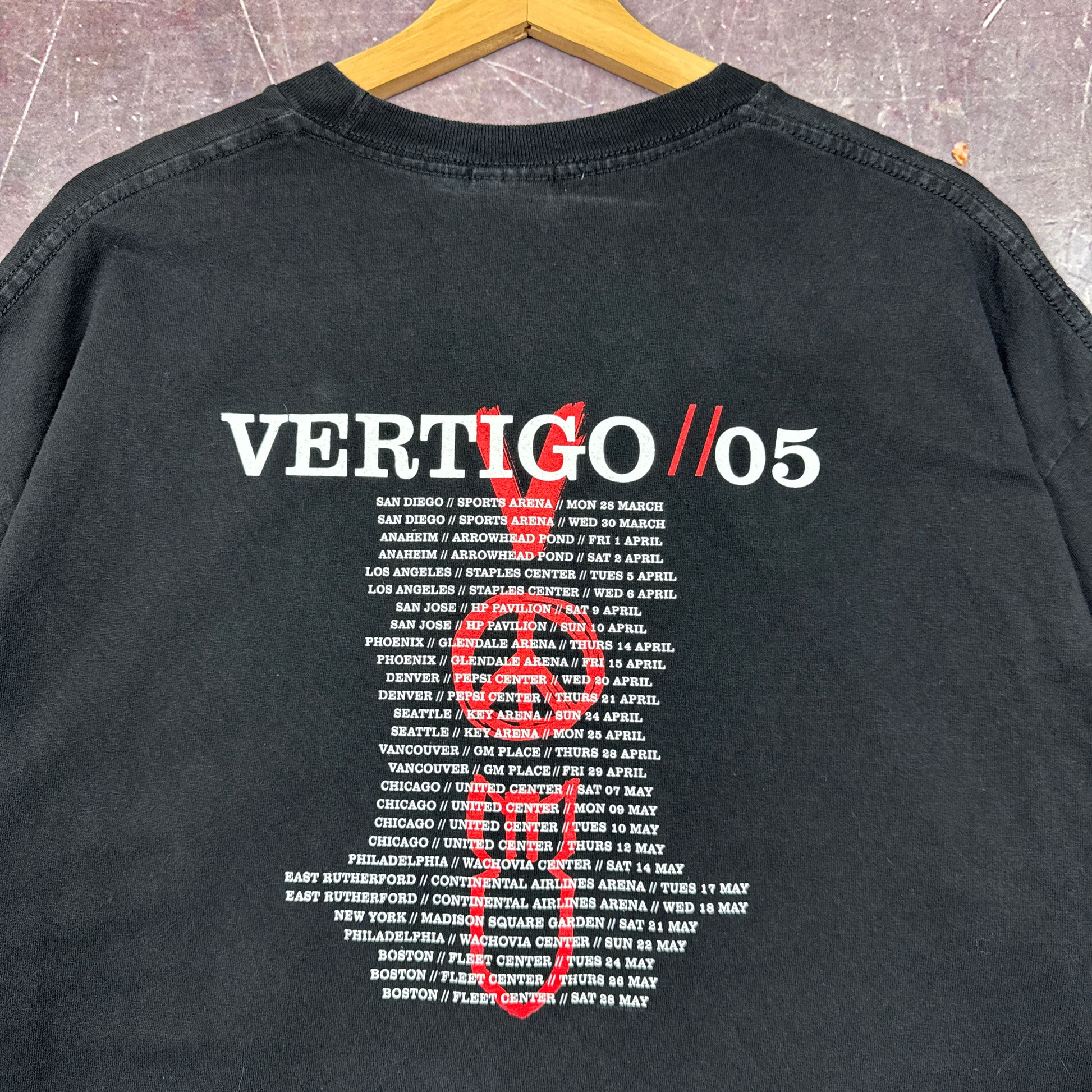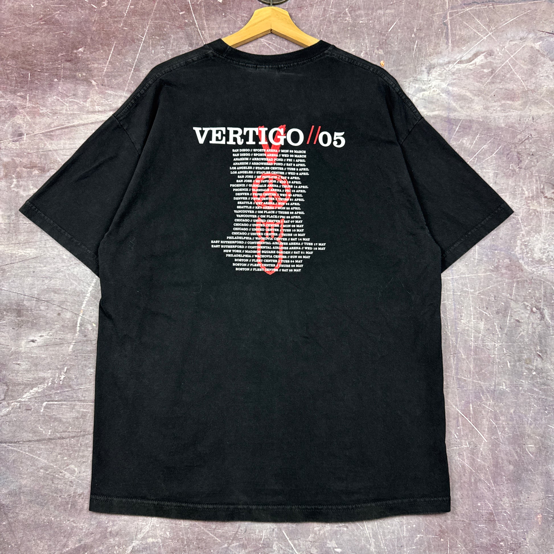 2005 Faded Black Vertigo Tour V Peace Bomb Graphic Shirt XL 2832