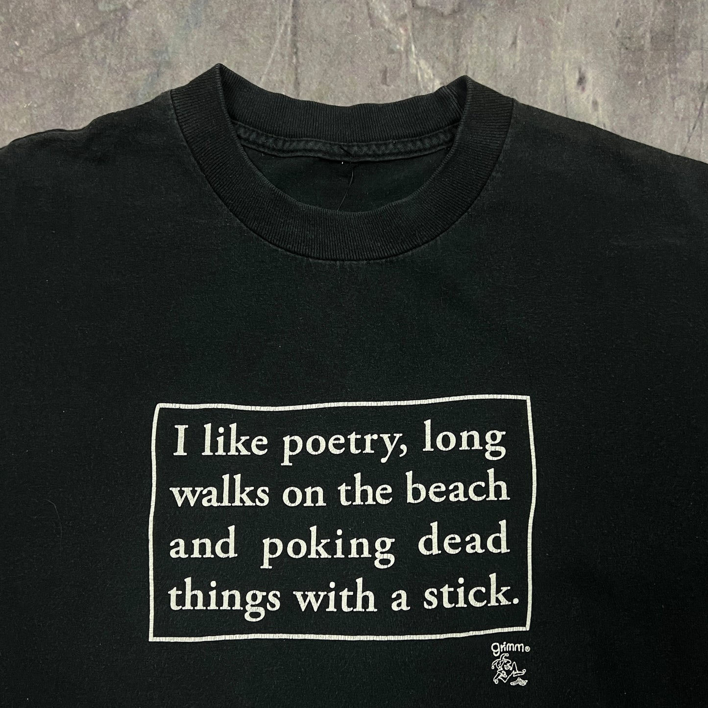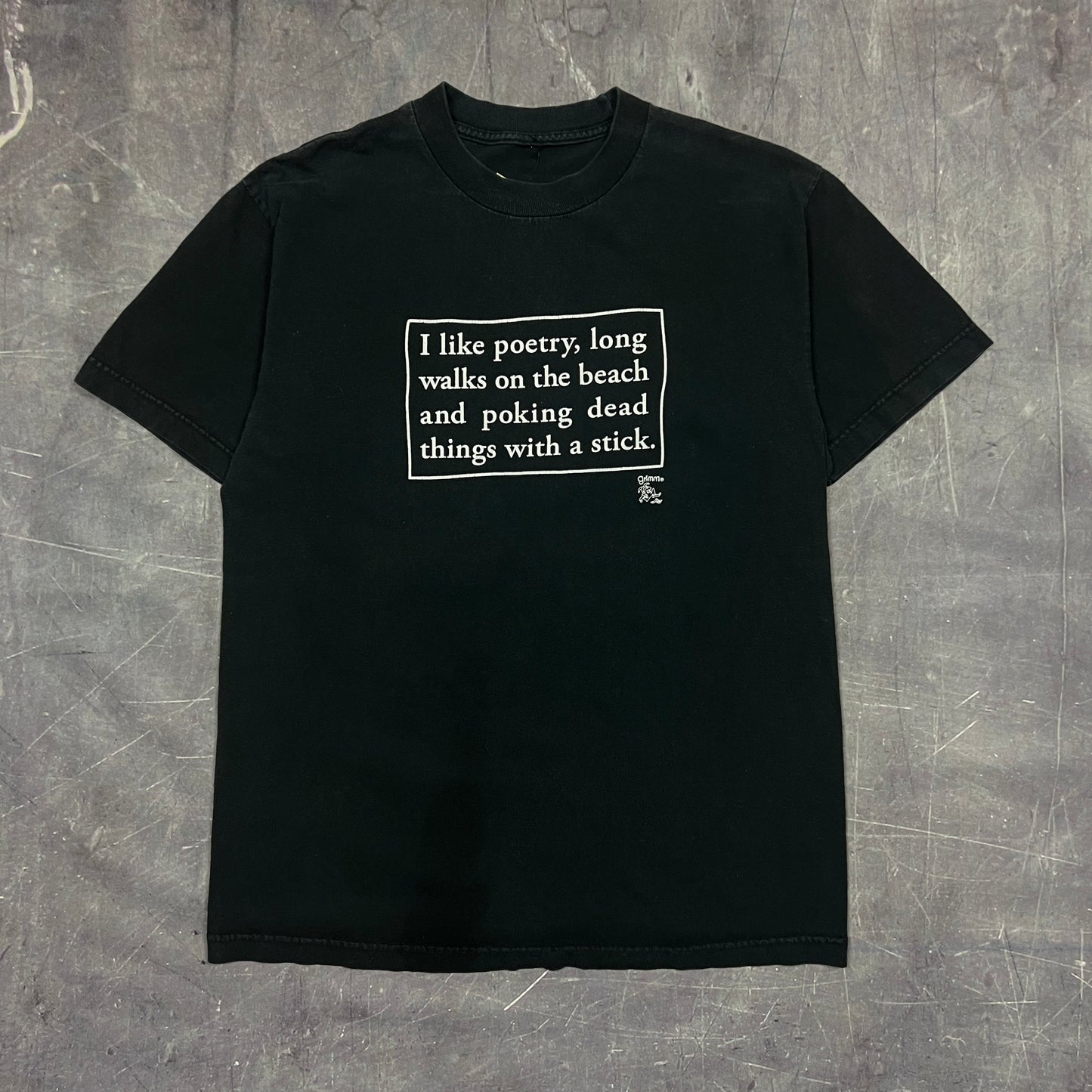 90s Black Text "I Like Poetry, Long Walks On The Beach, And Poking Dead Things With A Stick" Quote Shirt M AT10