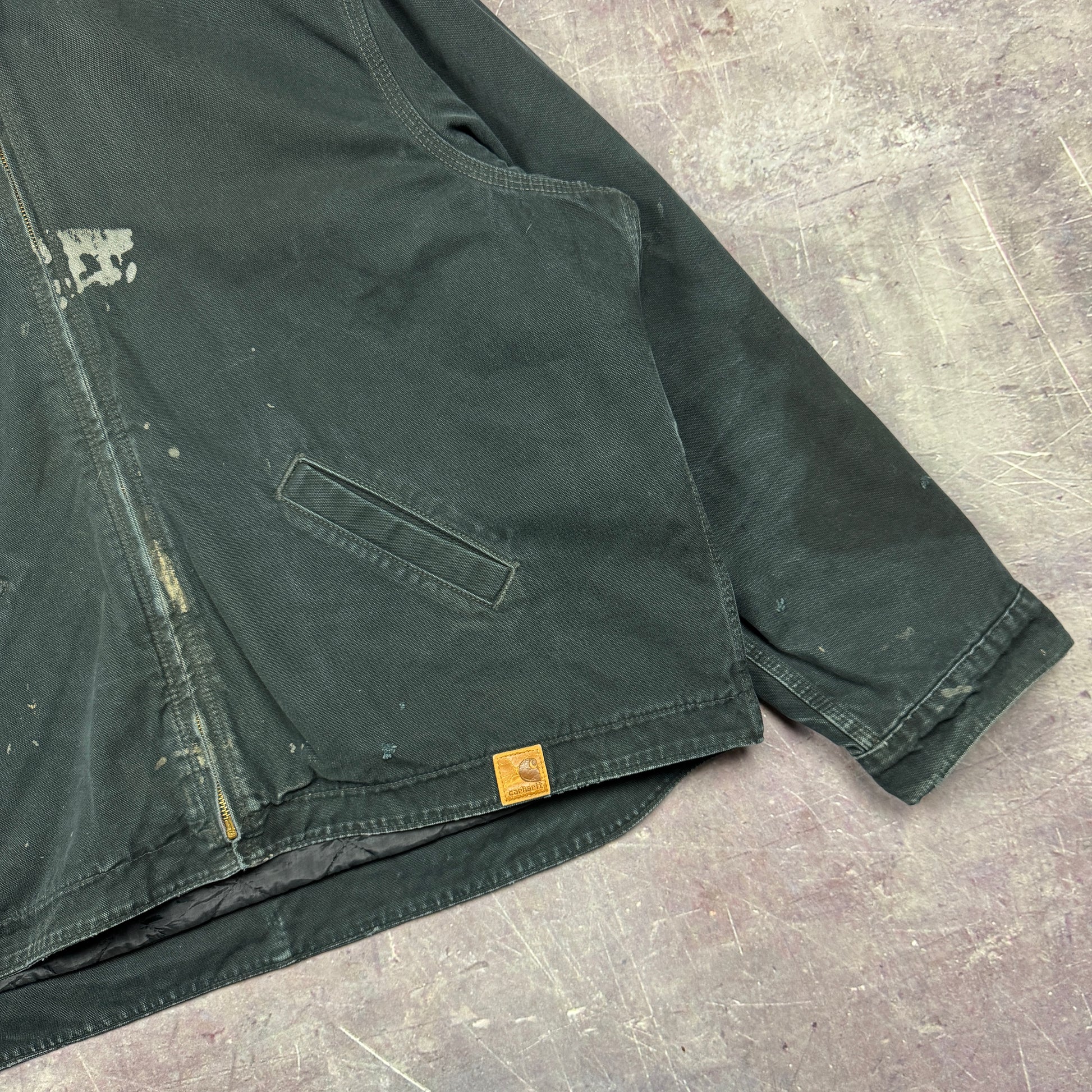 Early 00s Faded Black Carhartt Hooded Detroit Work Jacket XXL 2359