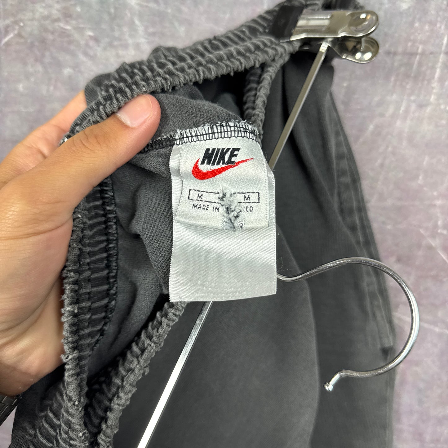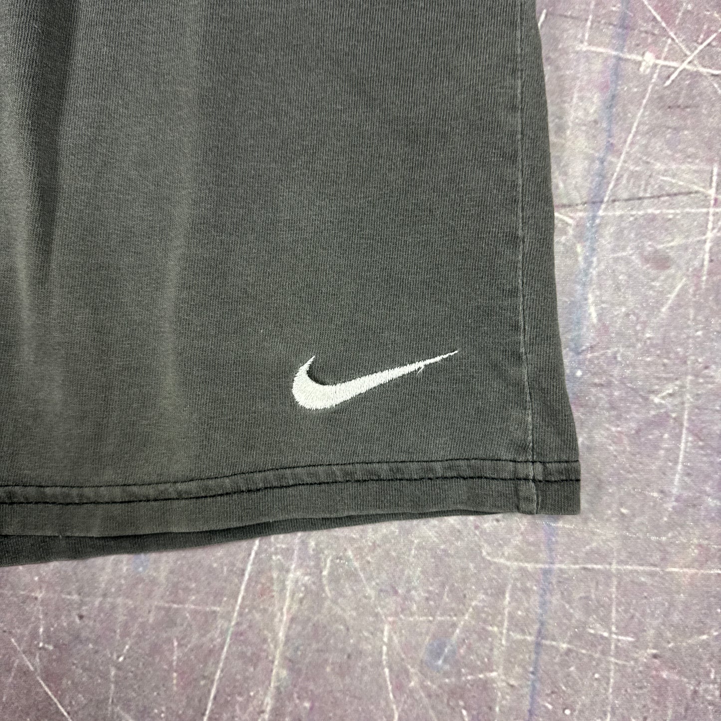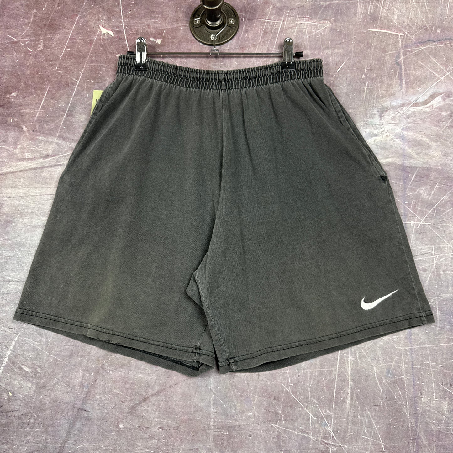 90s Faded Black Nike Embroidered Logo Cotton Sweat Shorts 31x7 2771