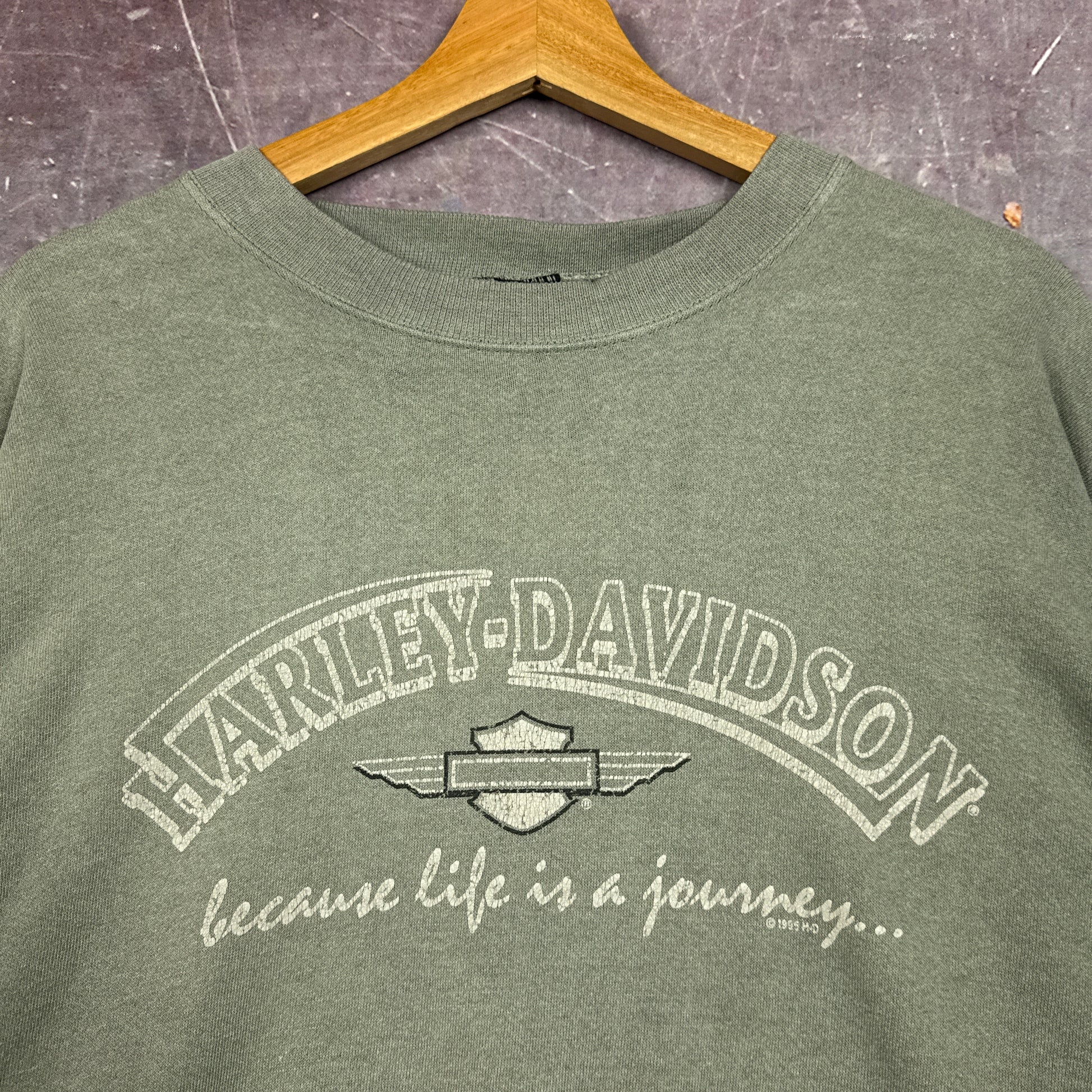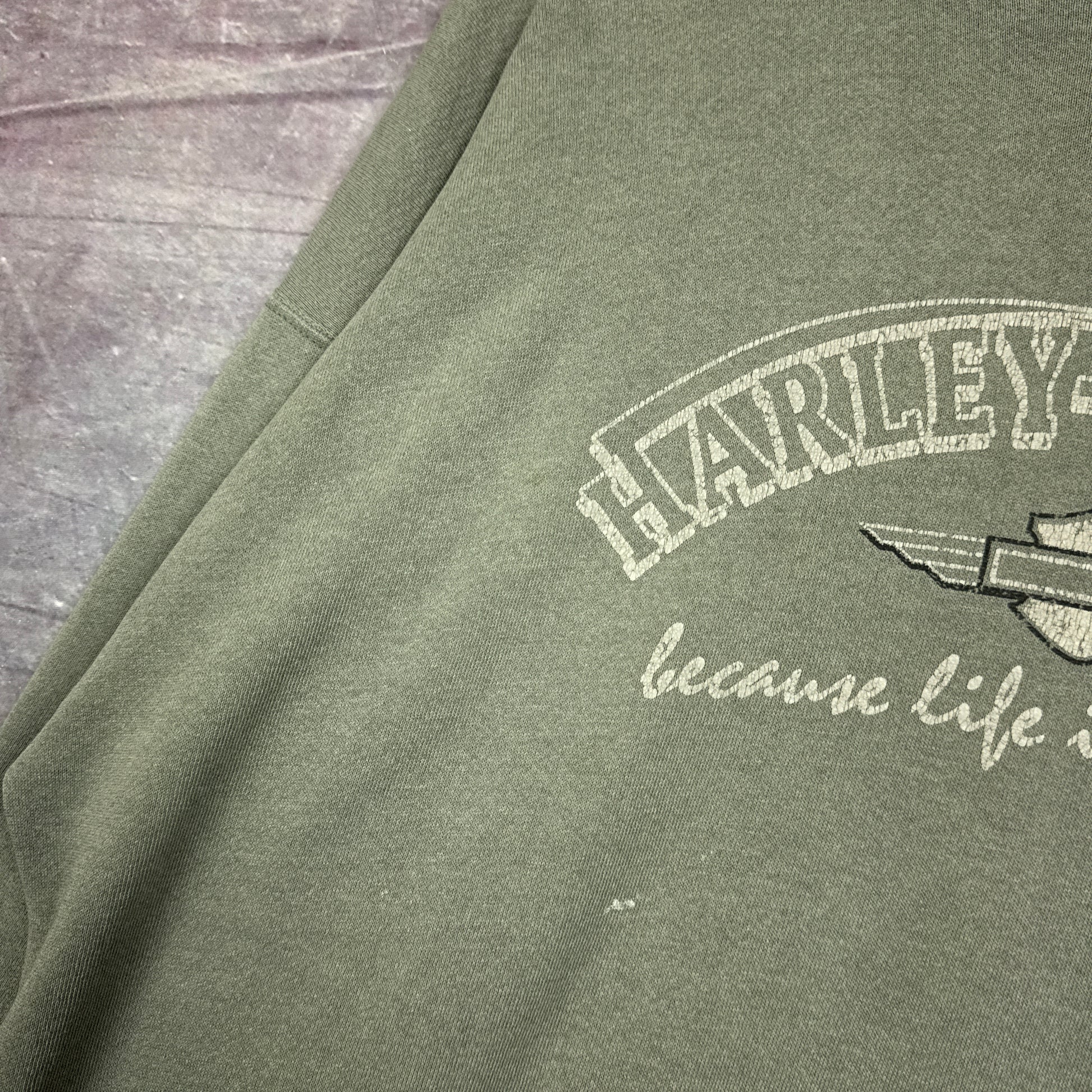 90s Olive Green Harley Davidson Sweatshirt 3089