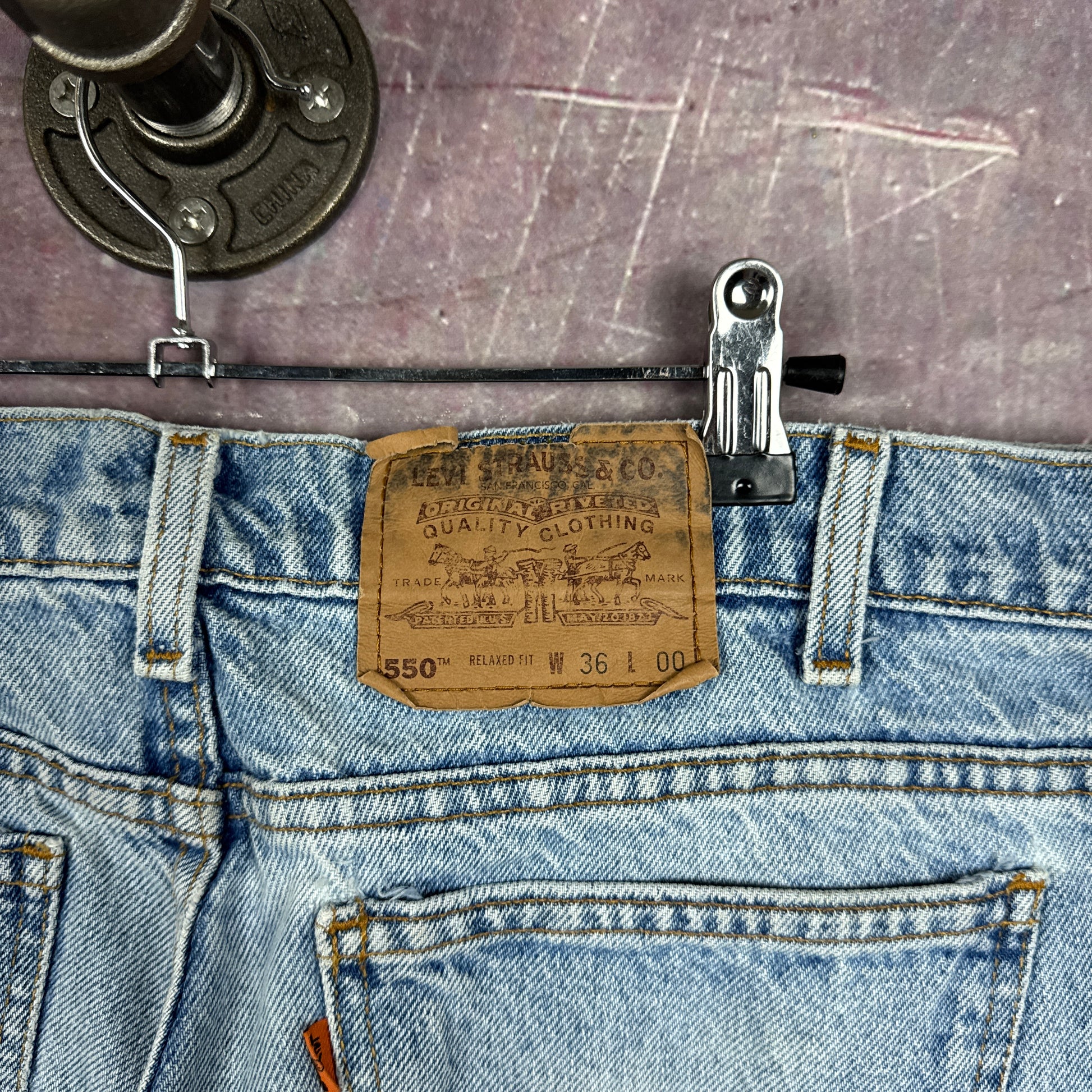 90s Light Wash Baggy Levi's 550 Orange Tab Denim Shorts 35x10.5 2782