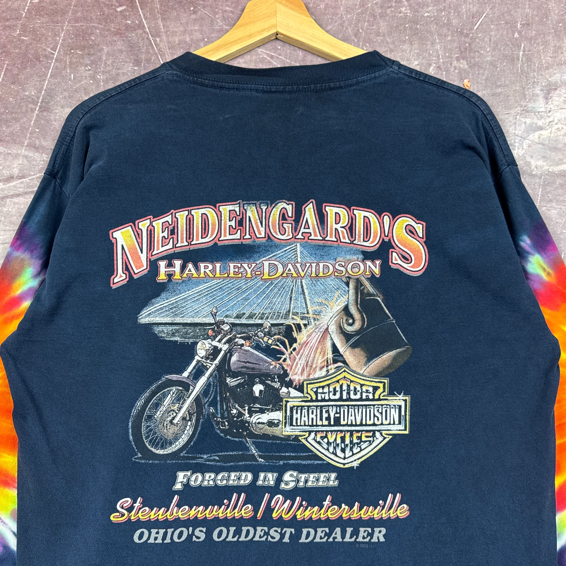 90s Navy Blue Harley Davidson Tie-Dye Sleeve Shirt 3052