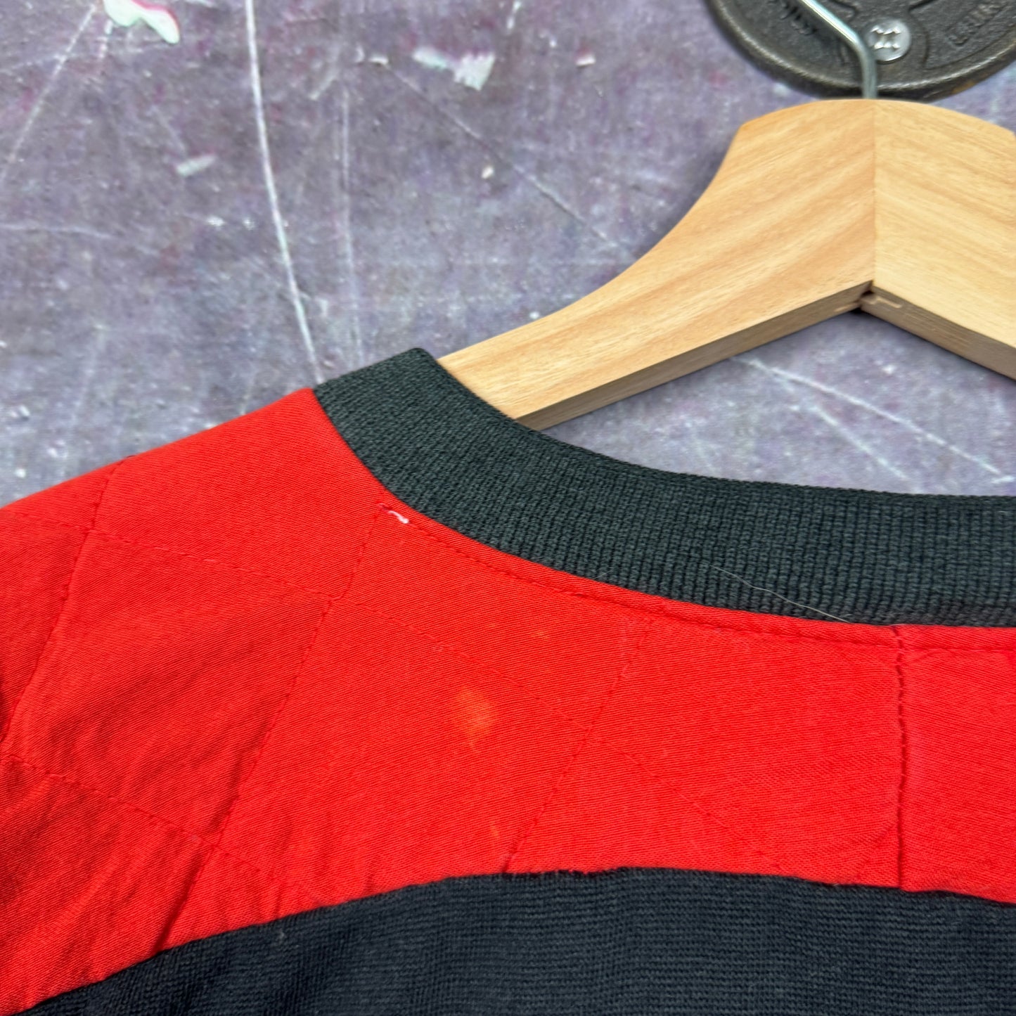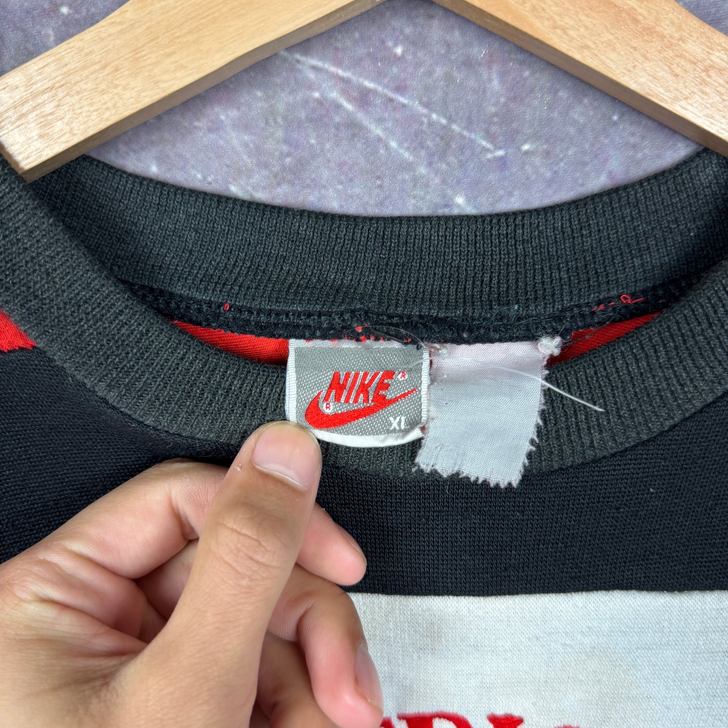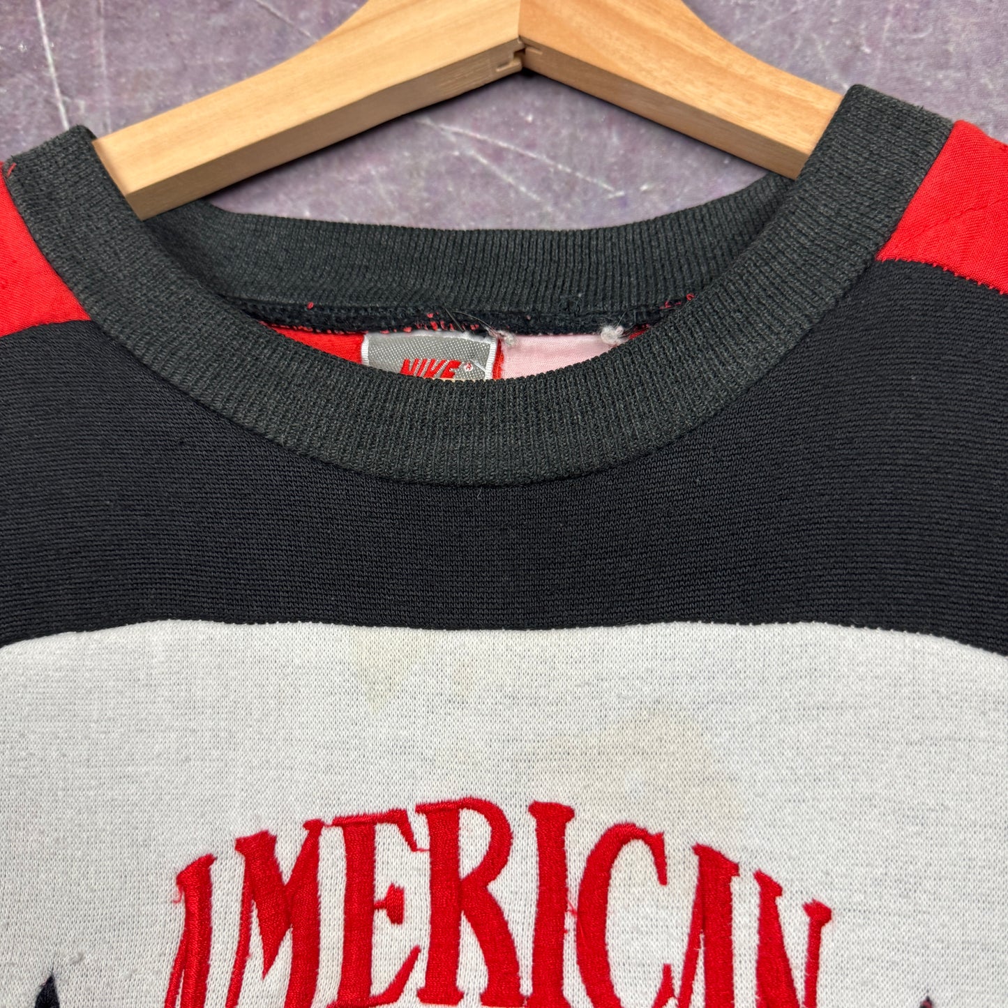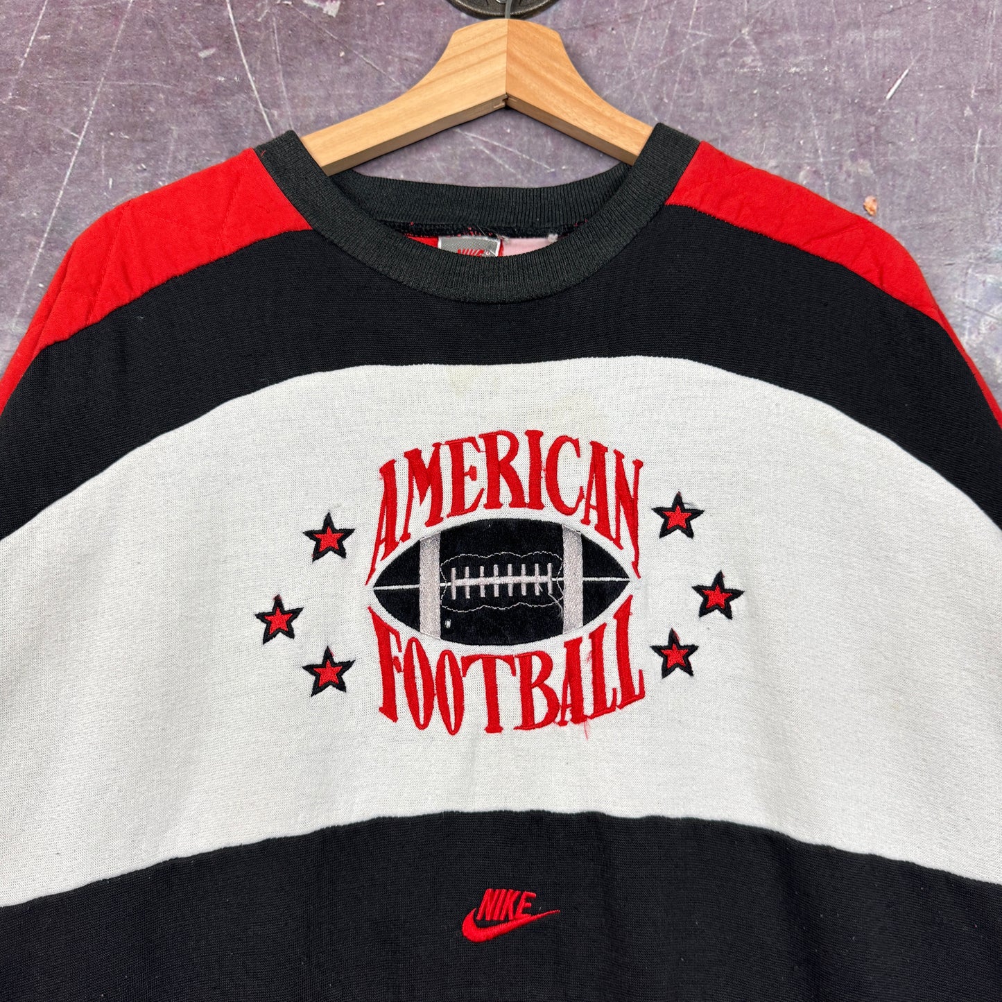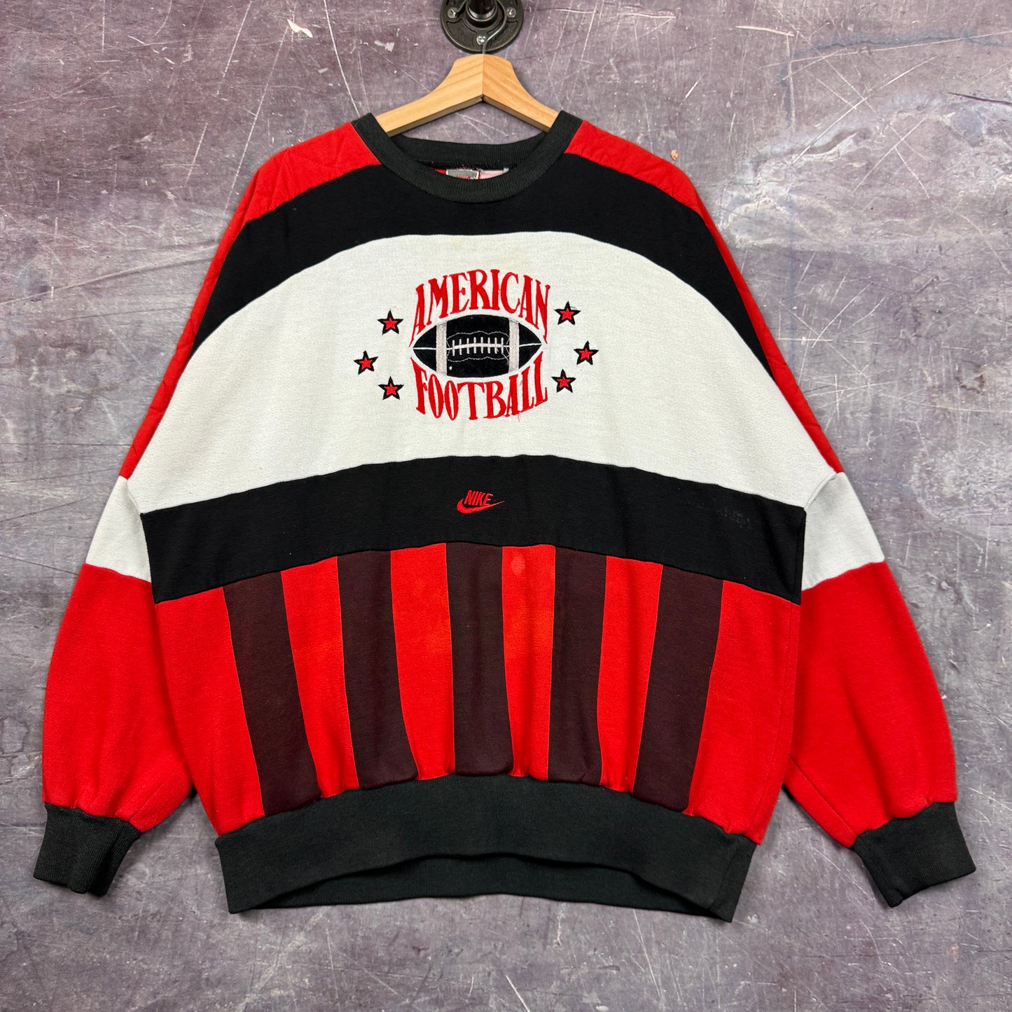 90s Red Black Striped Nike American Football Embroidered Graphic Crewneck Sweatshirt L 1962