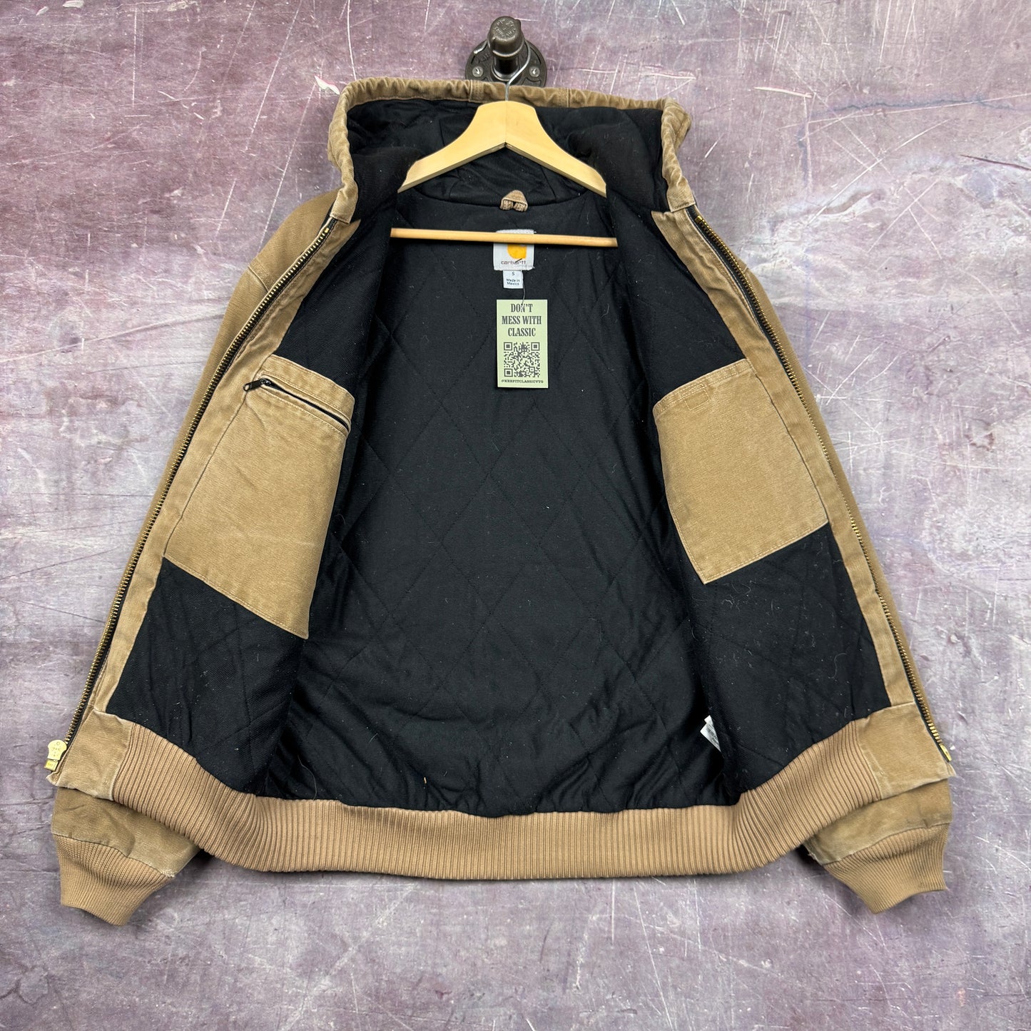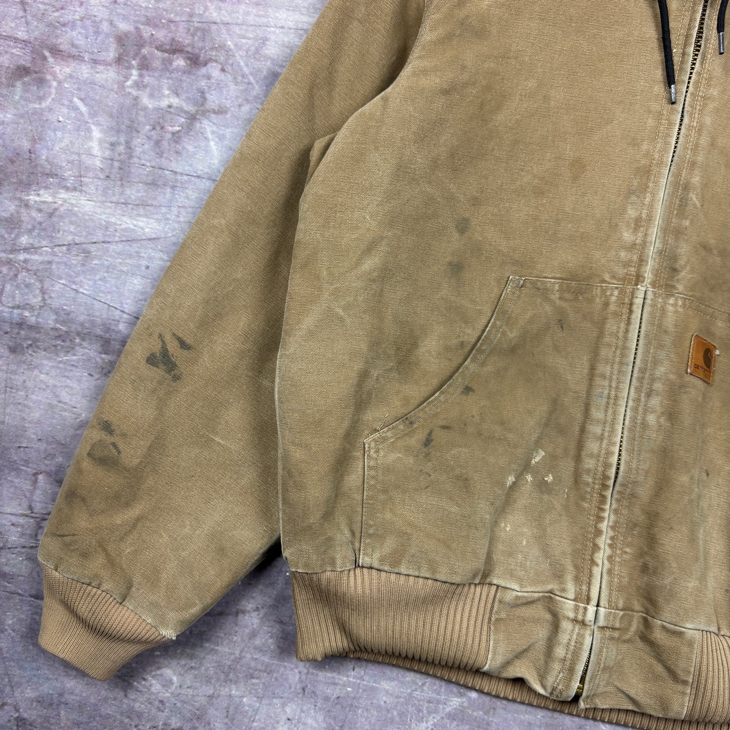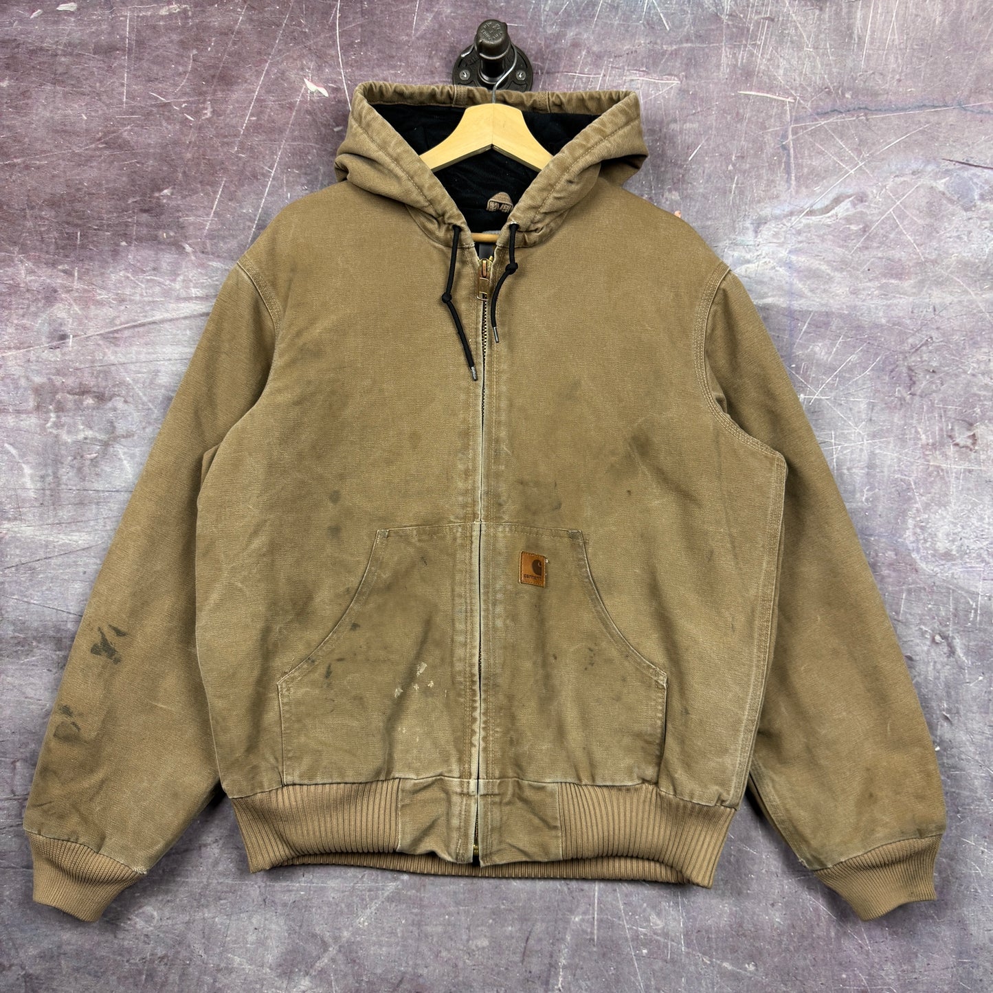 Early 00s Tan Brown Carhartt Hooded Active Work Jacket M 2373