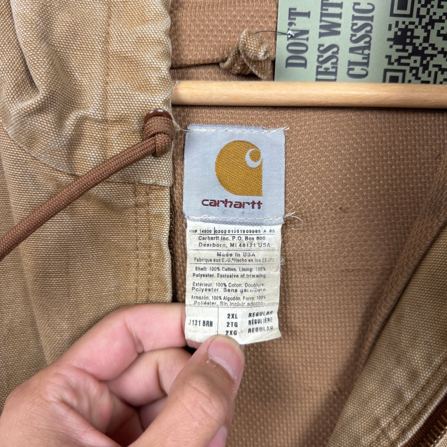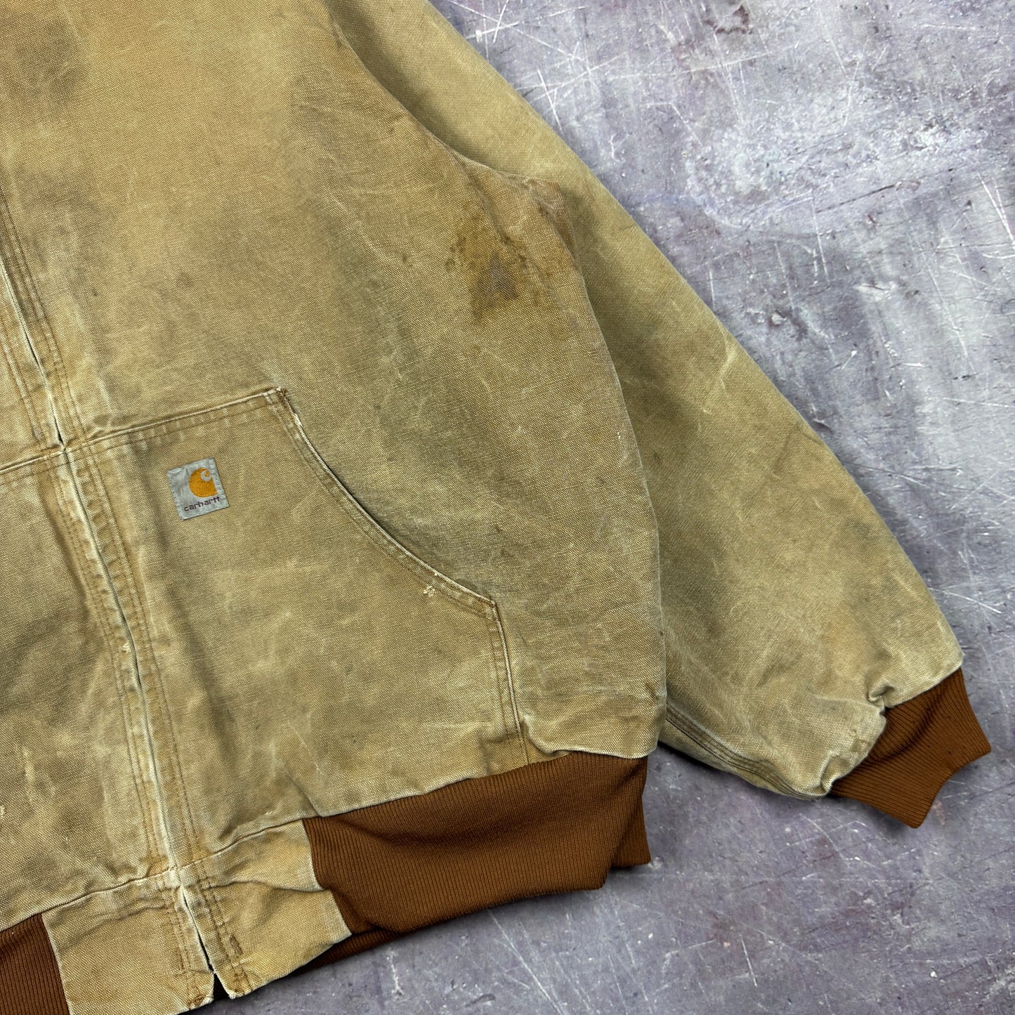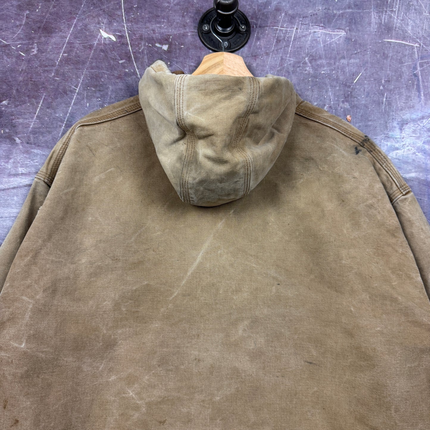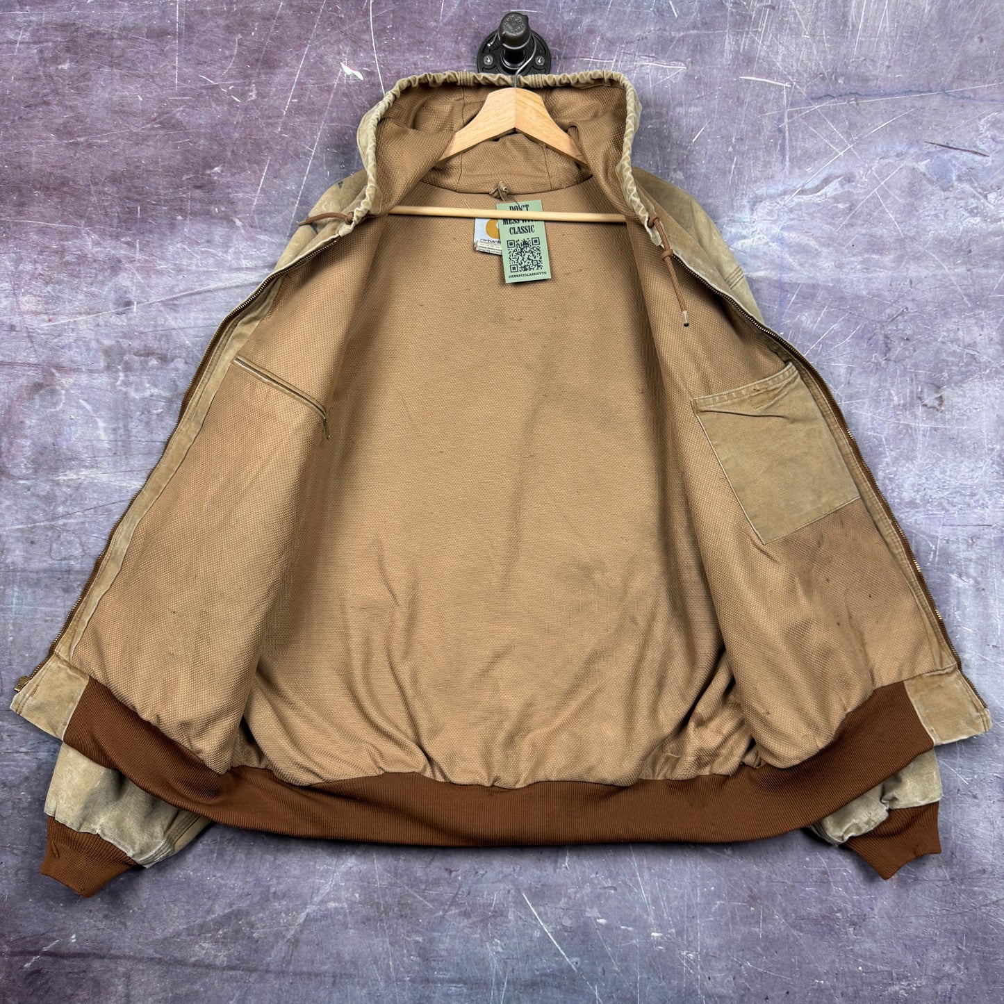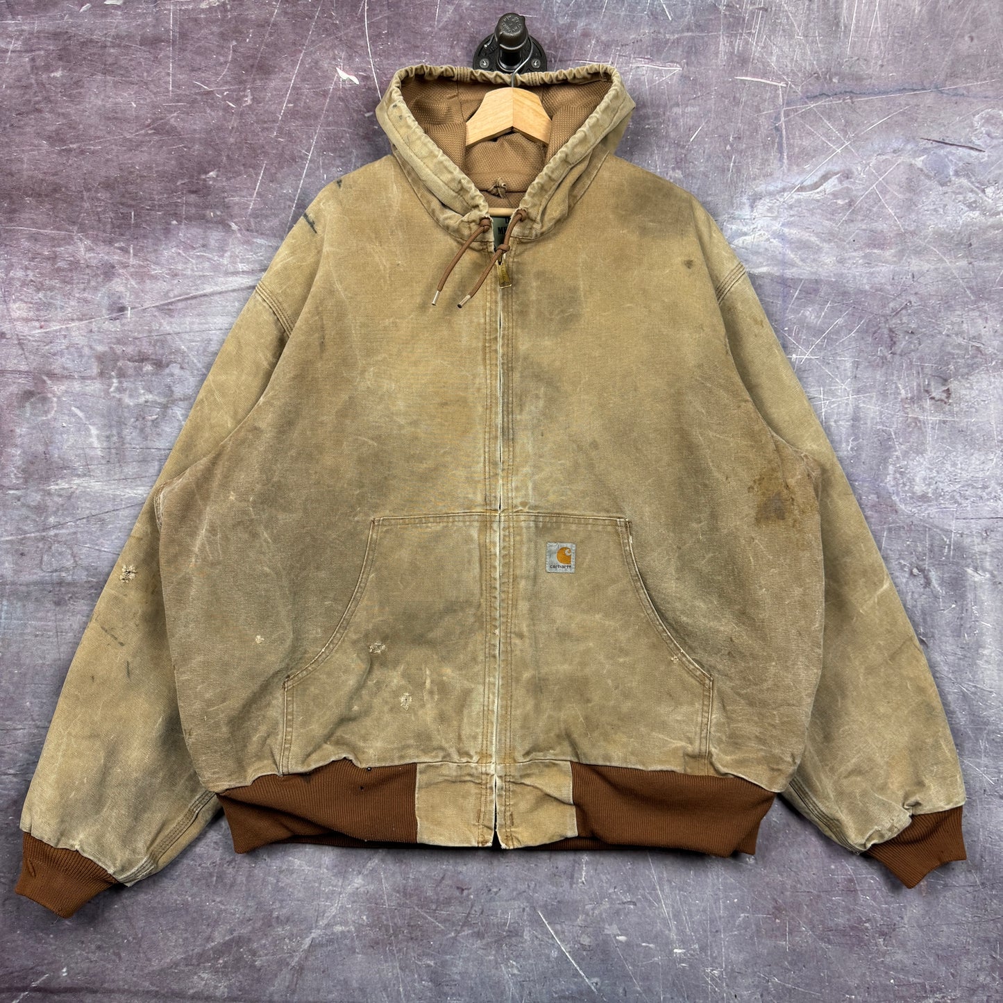 90s Tan Brown Carhartt Hooded Active Work Jacket XL 2345