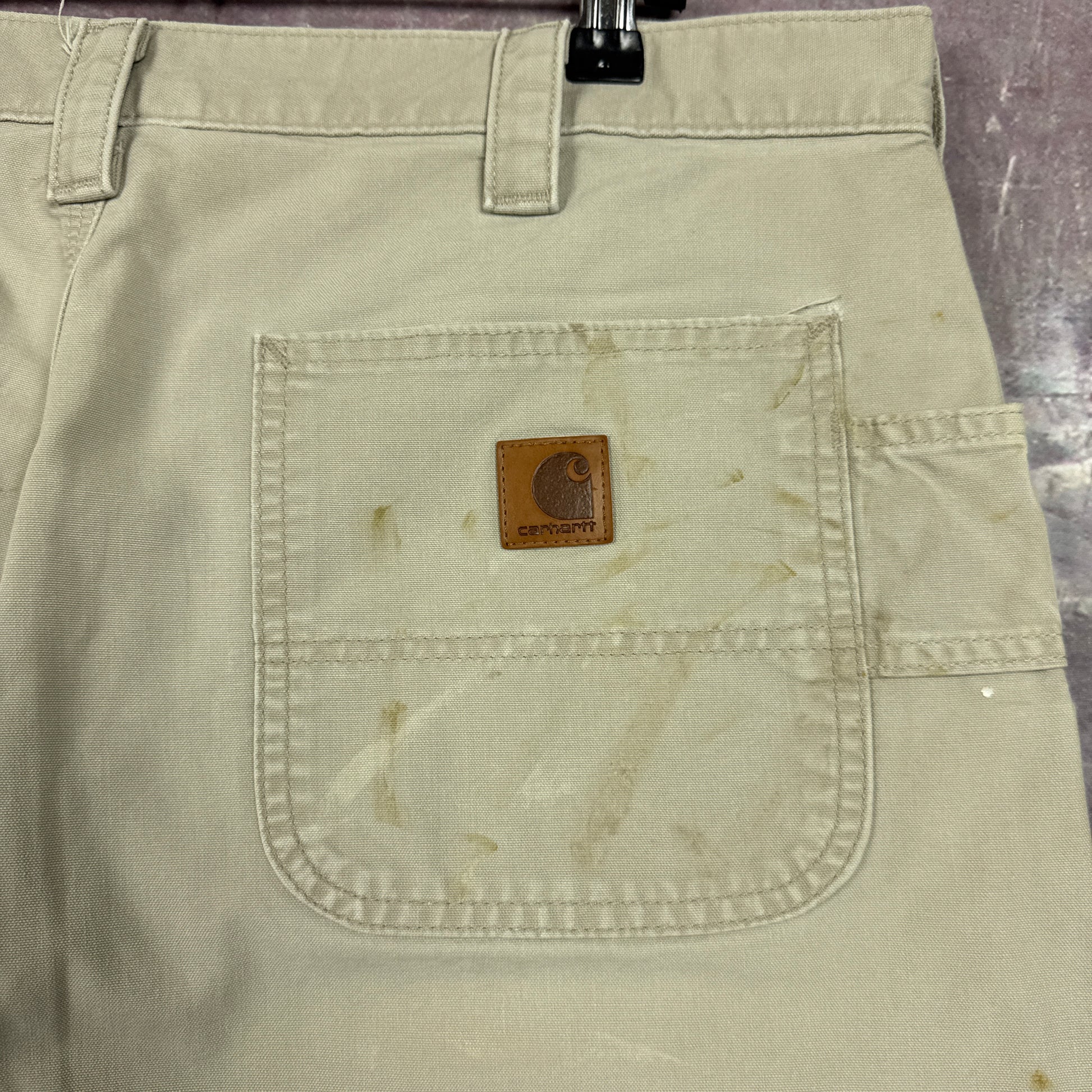 00s Tan Brown Baggy Carhartt Carpenter Painter Work Shorts 35x9.5 2794