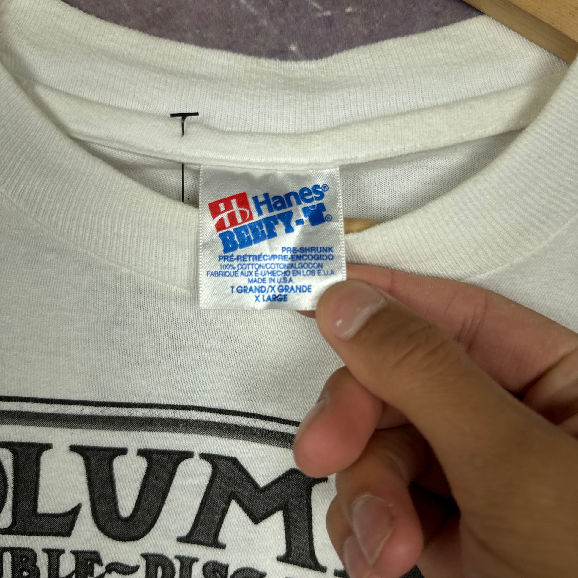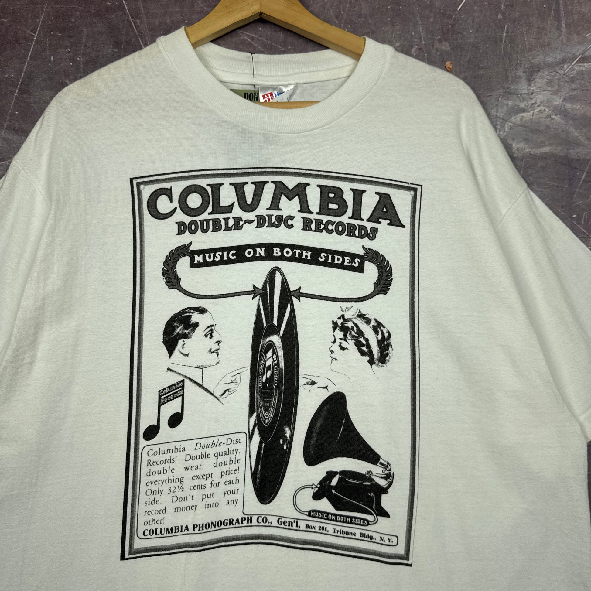 90s White Columbia Double Disc Records Music On Both Sides Graphic Shirt XL 2866