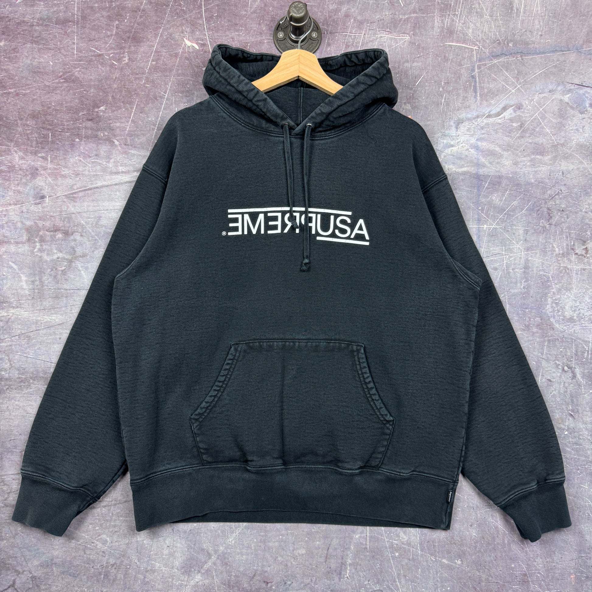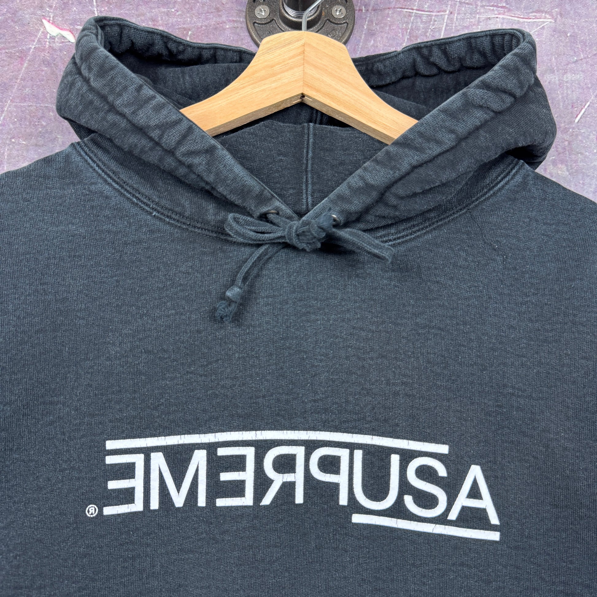 F/W 2021 Black Supreme USA Reverse Spellout Graphic Hoodie L 1710