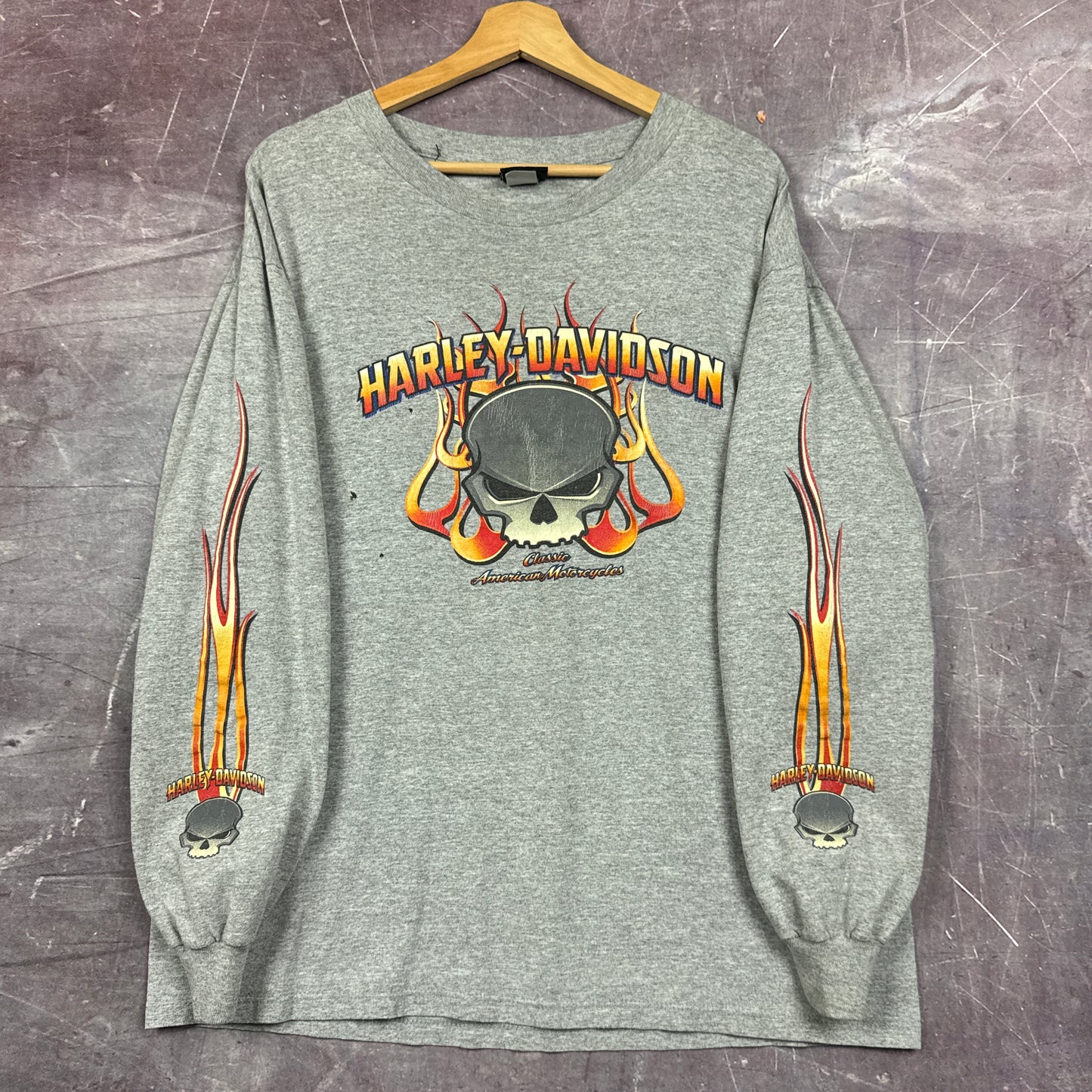00s Grey Harley Davidson Flame Sleeve Shirt AP22